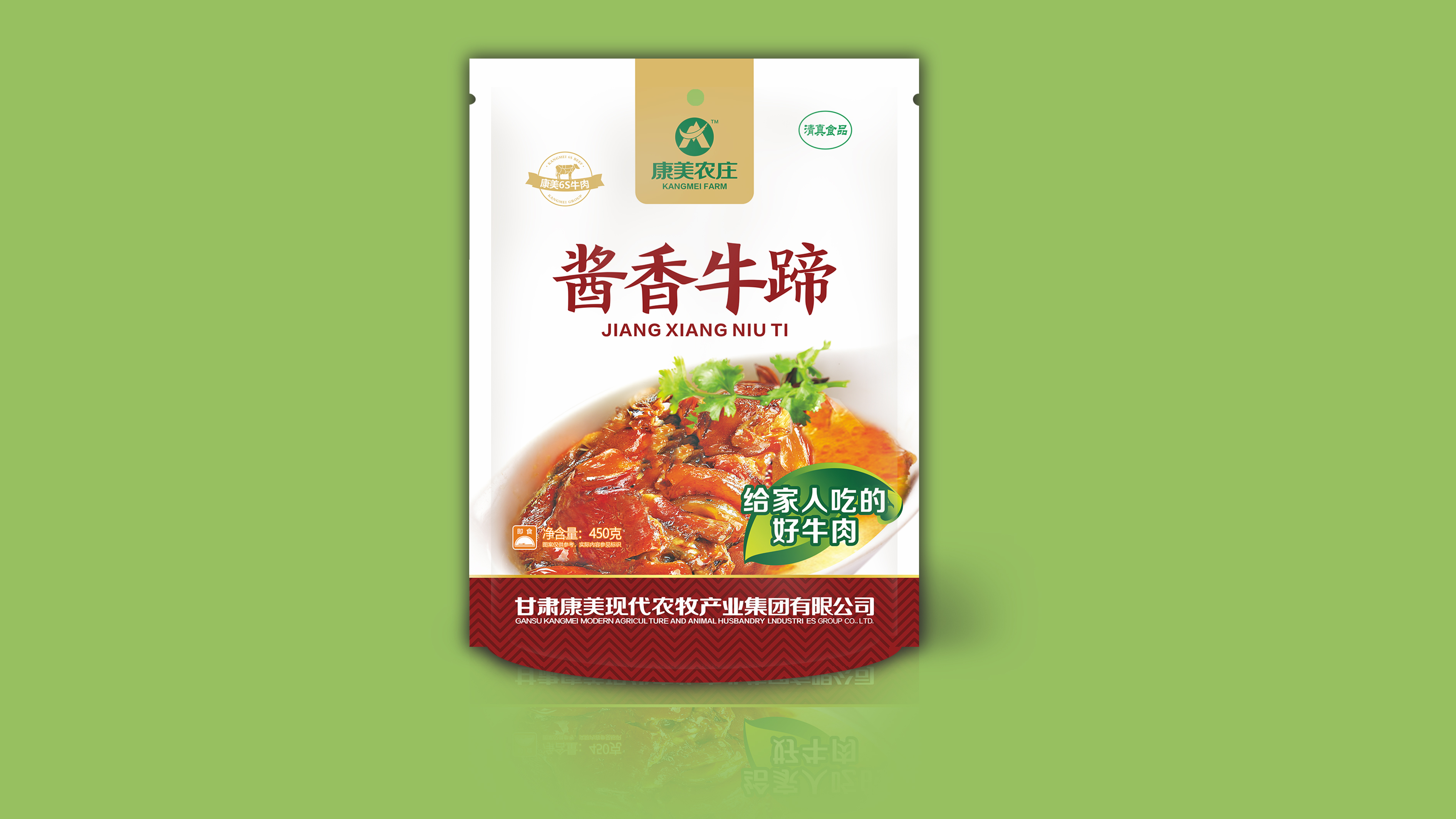 牛蹄:配料为精品排酸牛蹄、食用盐、味精、冰糖、天然香辛料传统工艺制作而成。牛蹄含丰富的胶原蛋白,肉质细致爽滑,弹劲十足,老少皆宜,是标准的康美农庄三好牛肉。