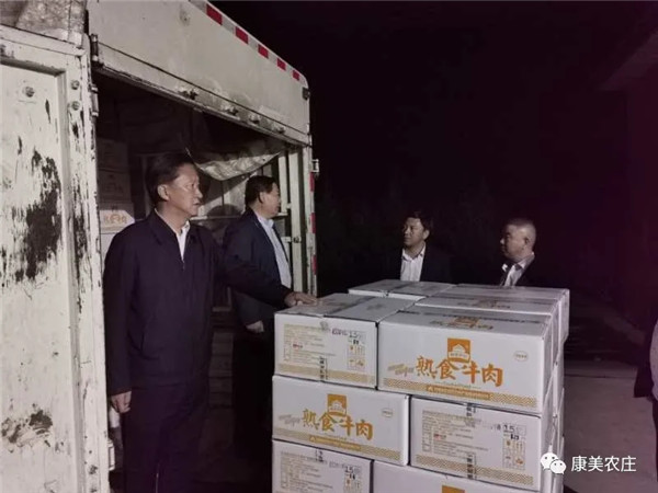 此次援助物资主要有康美牛肉拌面、熟食牛肉系列产品以及新华牧业的熟食鸡肉 、鸡蛋等物资 。该批物资连夜调集装车 ,24日清晨六时出发火速运往陇南。